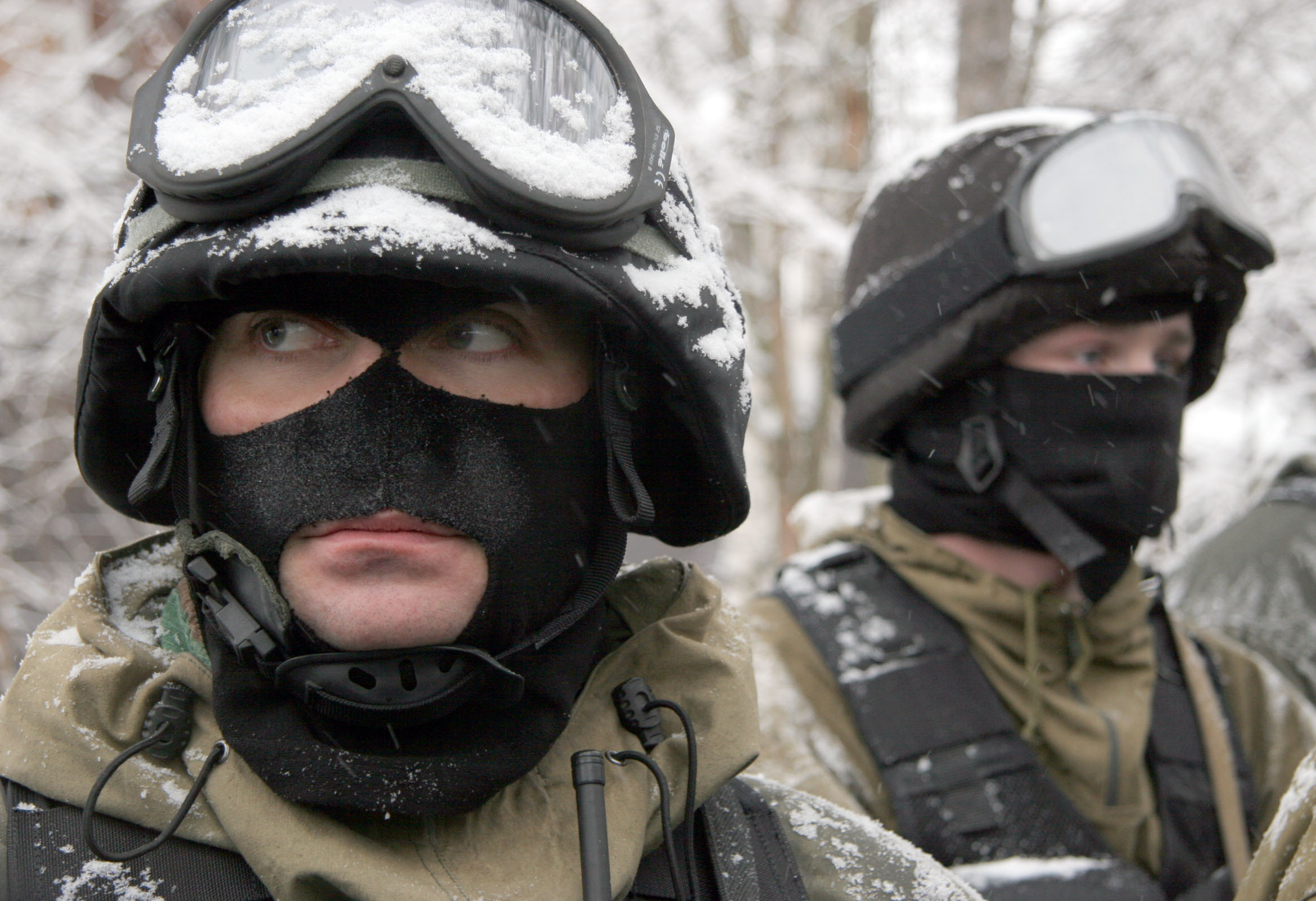 Members of an elite Spetsnaz (special forces) group of the Russian Interior Ministry wearing masks during an anti-terrorism exercise outside of Moscow, 9 December 2005. The OSCE contributes to world-wide efforts in combating terrorism.