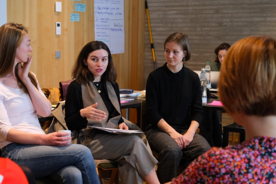 Nushofarin Noziri (middle), during the kick-off week of the OSCE Women’s Peace Leadership Programme, next to Programme participants Caroline Brooks (left) and Hanna Manoilenko (right).