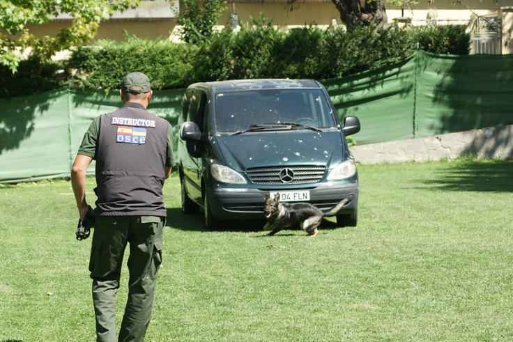 An instructor at the graduation ceremony of Ukrainian border management agencies following the OSCE and Guardia Civil canine training course