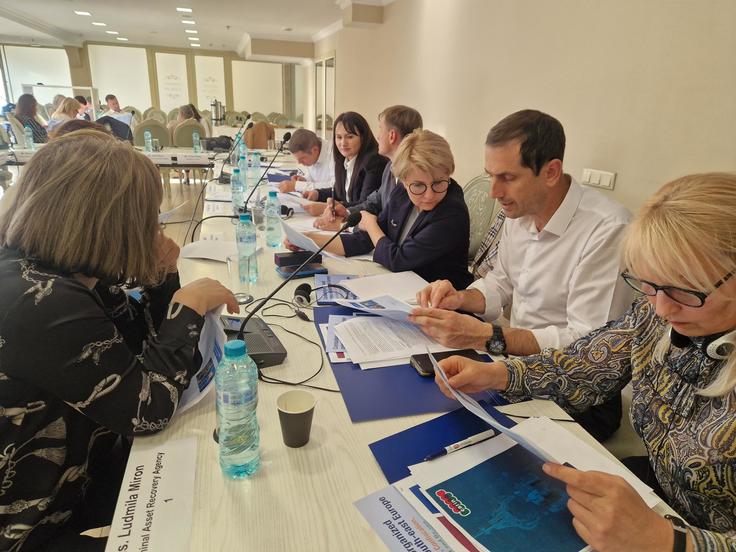 Representatives of Moldovan Criminal Asset Recovery Agency, Prosecutor’s Office for Combating Organized Crime and Special Cases, General Police Inspectorate, Ministry of Justice, Anti-Corruption Prosecutor’s Office and Chisinau City Prosecutor’s Office attending a workshop on cross-border recovery and repatriation of criminal assets, Chisinau, 24-26 October 2023.