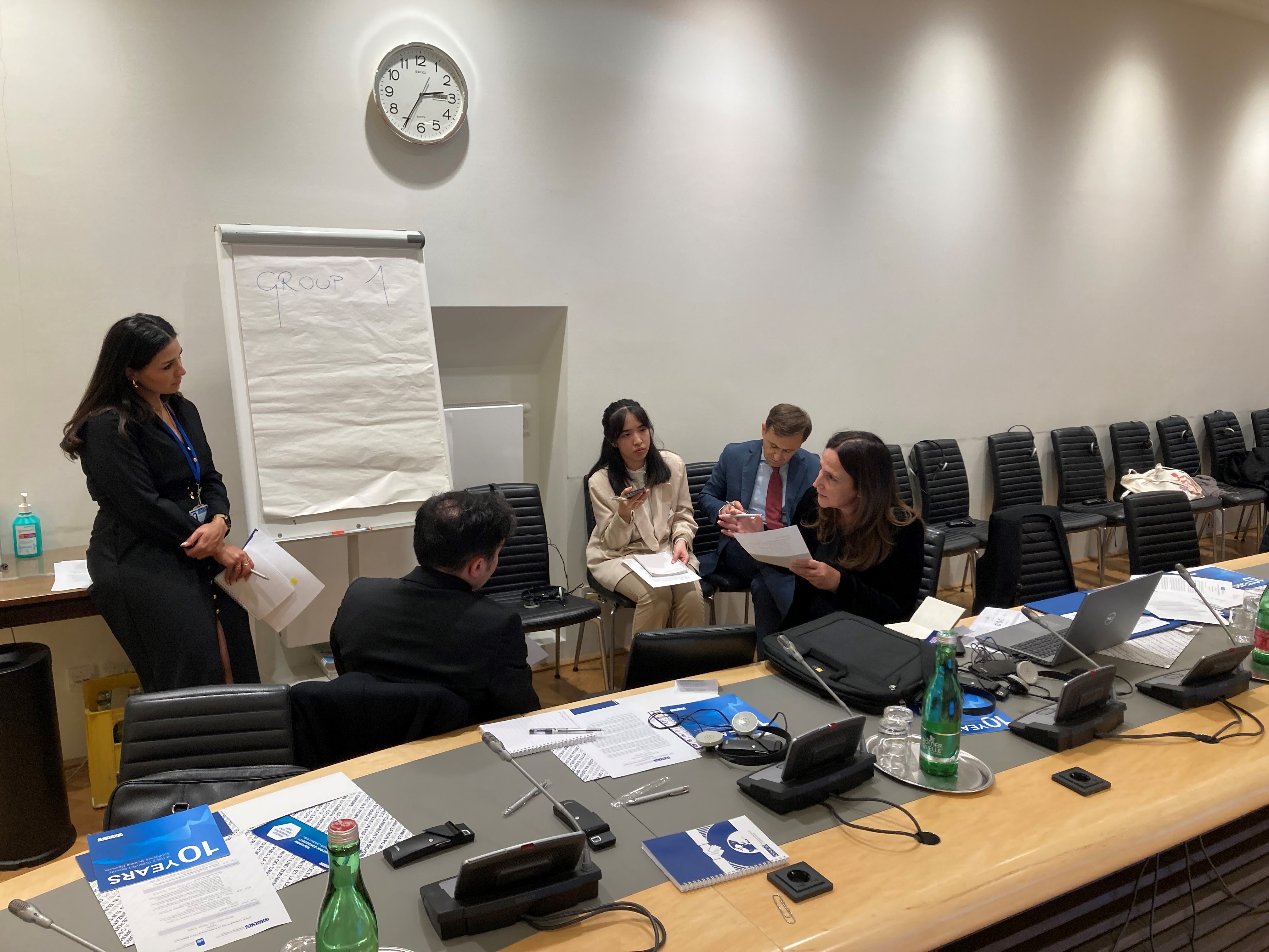 Participants attending a training course focused on building national capacities to engage in international cyber policy deliberations, Vienna, 6 November.