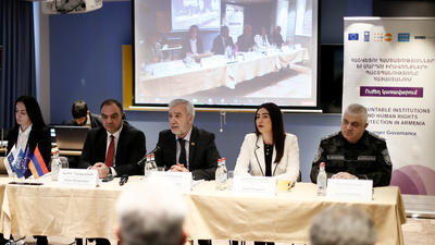 On 20 February, the OSCE’s Transnational Threats Department presented the concept of the reformed community policing and the results of the Public Survey on Perceptions of the Police and Police Reforms in Yerevan, Armenia. The high-level meeting was attended by the Minister of Internal Affairs of the Republic of Armenia, the Deputy Minister of Internal Affairs, and the Chairman of the National Assembly’s Standing Committee on Defense and Security.