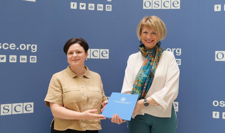 H.E. Victoria Rosa, Ambassador and Permanent Representative of Moldova to the OSCE, with the OSCE Secretary General Helga Maria Schmid, Vienna, 3 September 2024.