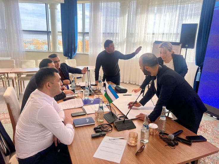 Participants in national training course discuss how to identify suspected foreign terrorist fighters and other criminals at border crossings, Samarkand, 25 November 2024.