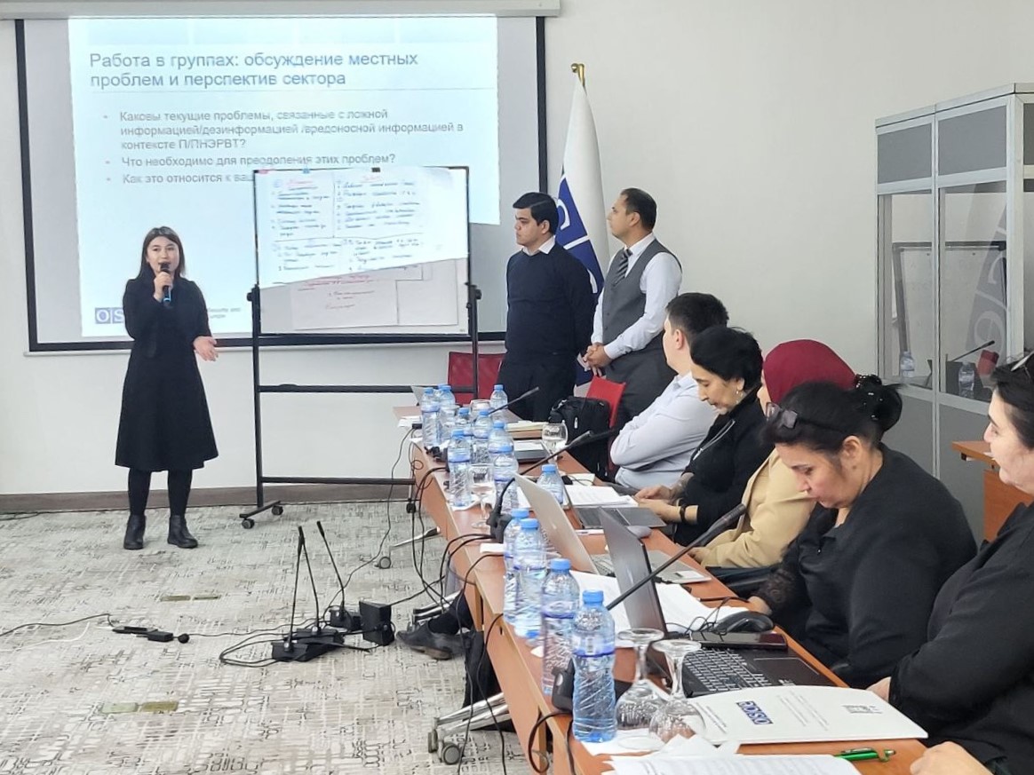 Participants at a training course on media and information literacy in preventing and countering violent extremism and radicalization that lead to terrorism (P/CVERLT) in Tashkent, 18 December 2024.