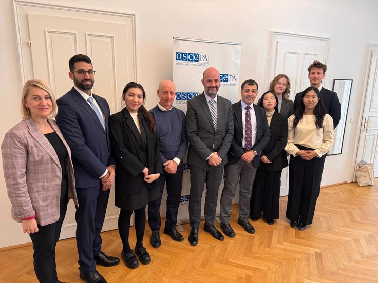 Special Representative of the OSCE Parliamentary Assembly (PA) Miodrag Pančeski welcoming participants of the 2025 OSCE Study Visit for Partners for Co-operation at the OSCE PA Vienna Office, 3 October 2025.