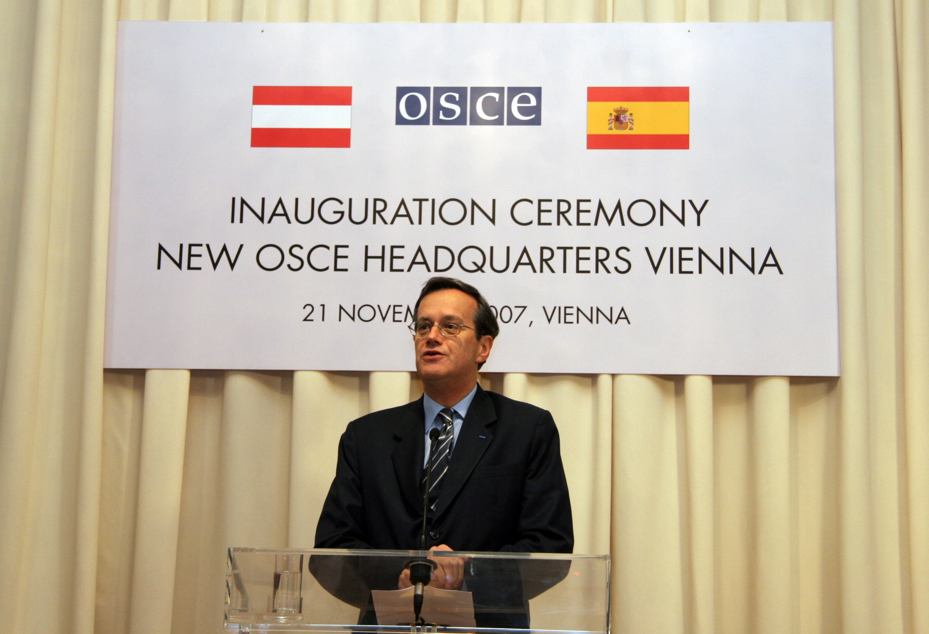OSCE Secretary General, Marc Perrin de Brichambaut, during the inauguration ceremony of the Organization's new Secretariat, in Vienna 21 November 2007.