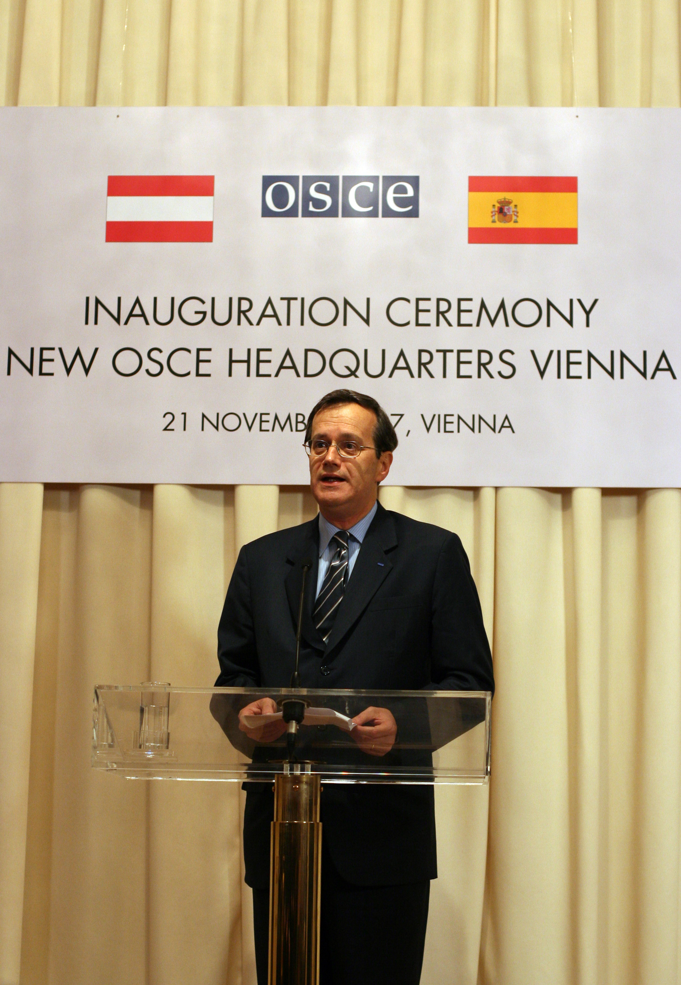 OSCE Secretary General, Marc Perrin de Brichambaut, during the inauguration ceremony of the Organization's new Secretariat, in Vienna, 21 November 2007.