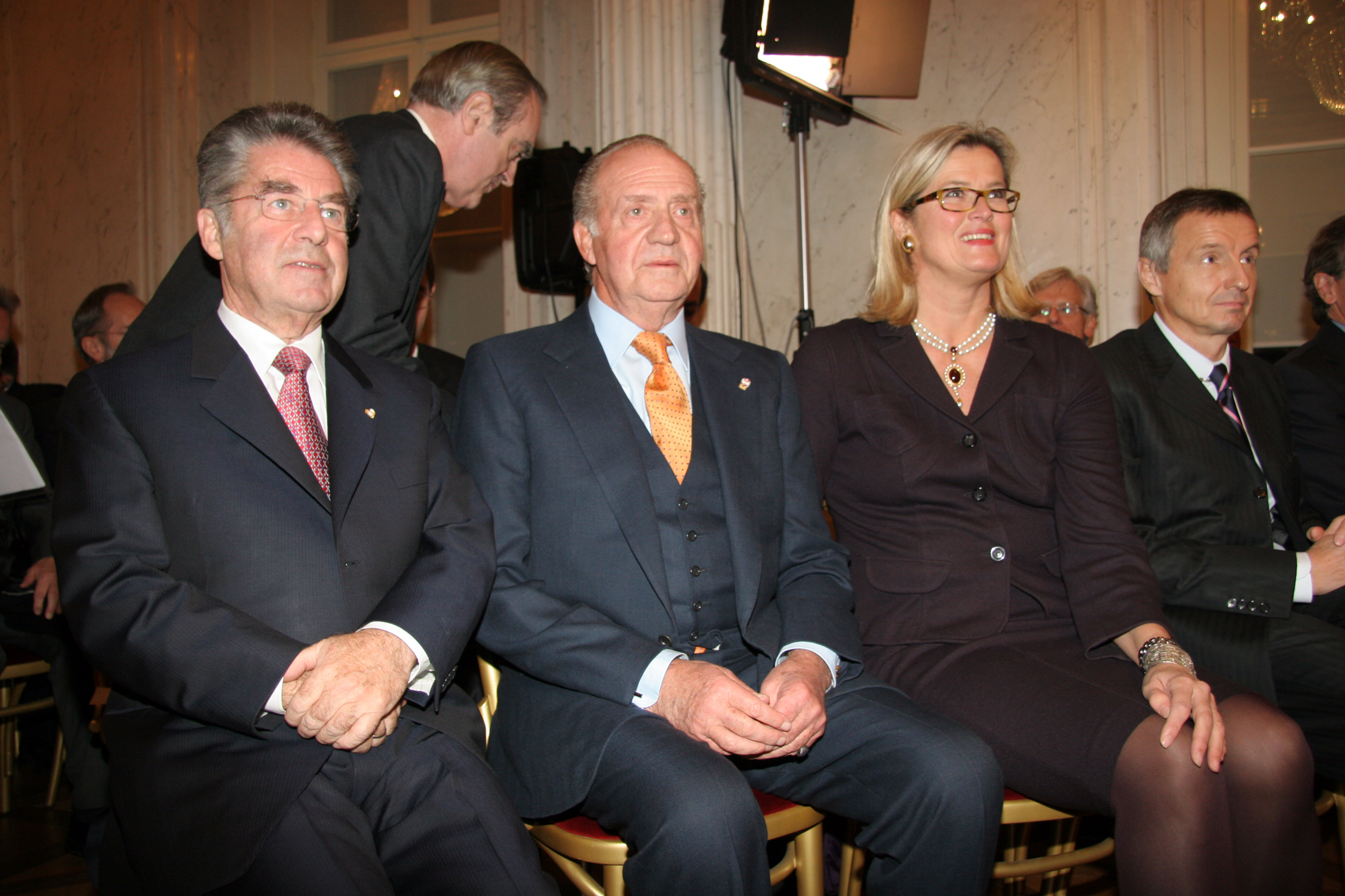 Austrian President Heinz Fischer (left), with King Juan Carlos I of Spain, and Foreign Minister Ursula Plassnik, at the inauguration ceremony of the new OSCE Secretariat, in Vienna 21 November 2007.