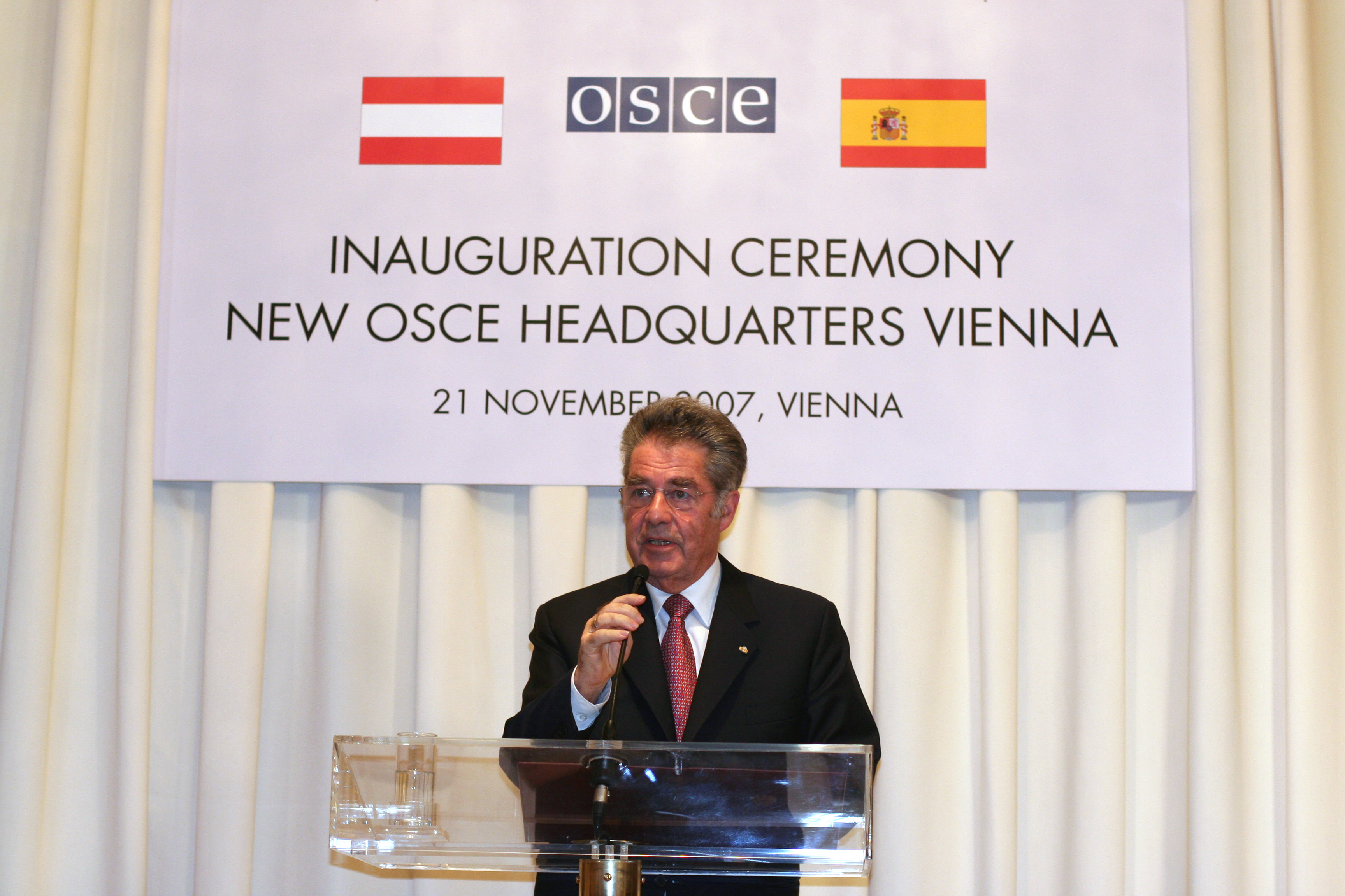 Austrian President Heinz Fischer during the inauguration ceremony of the new OSCE Secretariat, in Vienna 21 November 2007.