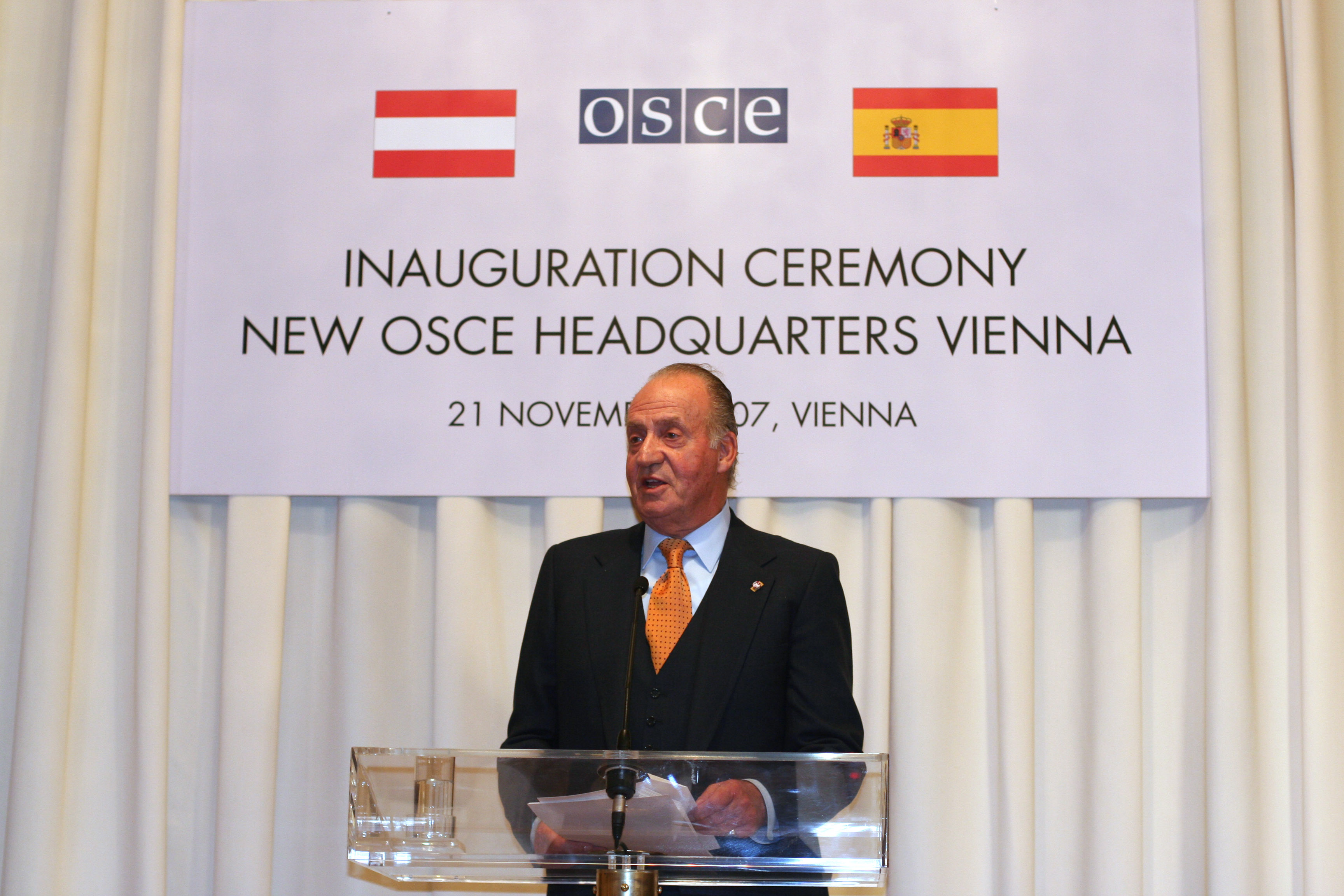 King Juan Carlos I of Spain speaks at the inauguration ceremony of the new OSCE Secretariat, in Vienna 21 November 2007.