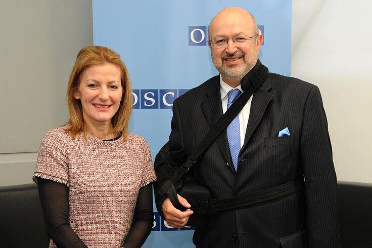 Ambassador Roksanda Ninčić, Permanent Representative of the Permanent Mission of the Republic of Serbia to the OSCE and other International Organizations in Vienna with OSCE Secretary General Lamberto Zannier, Vienna, 6 April 2017.