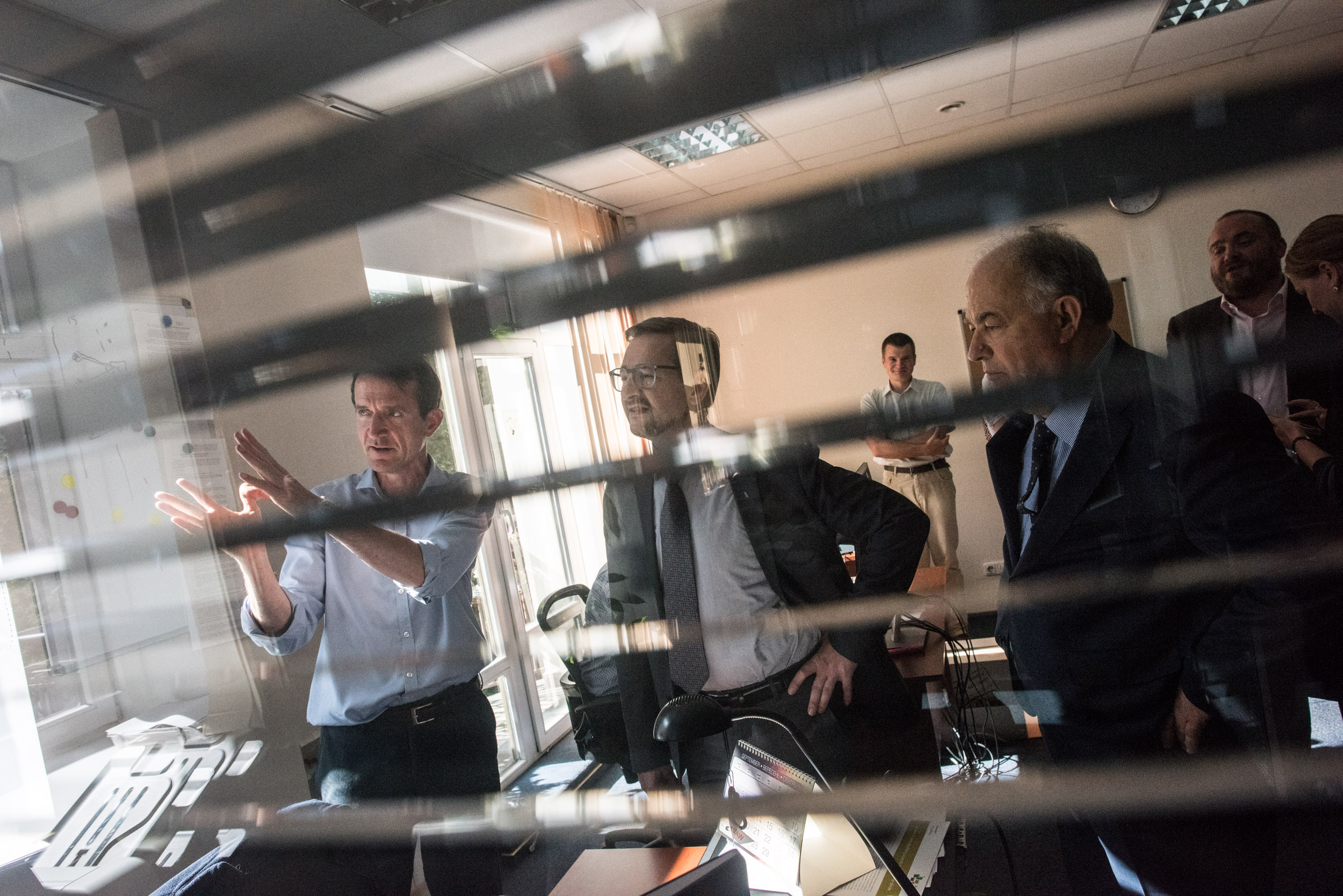 Staff members from the Special Monitoring Mission to Ukraine briefing the OSCE Secretary General, Thomas Greminger on their activities, Kyiv, 14 September 2017.