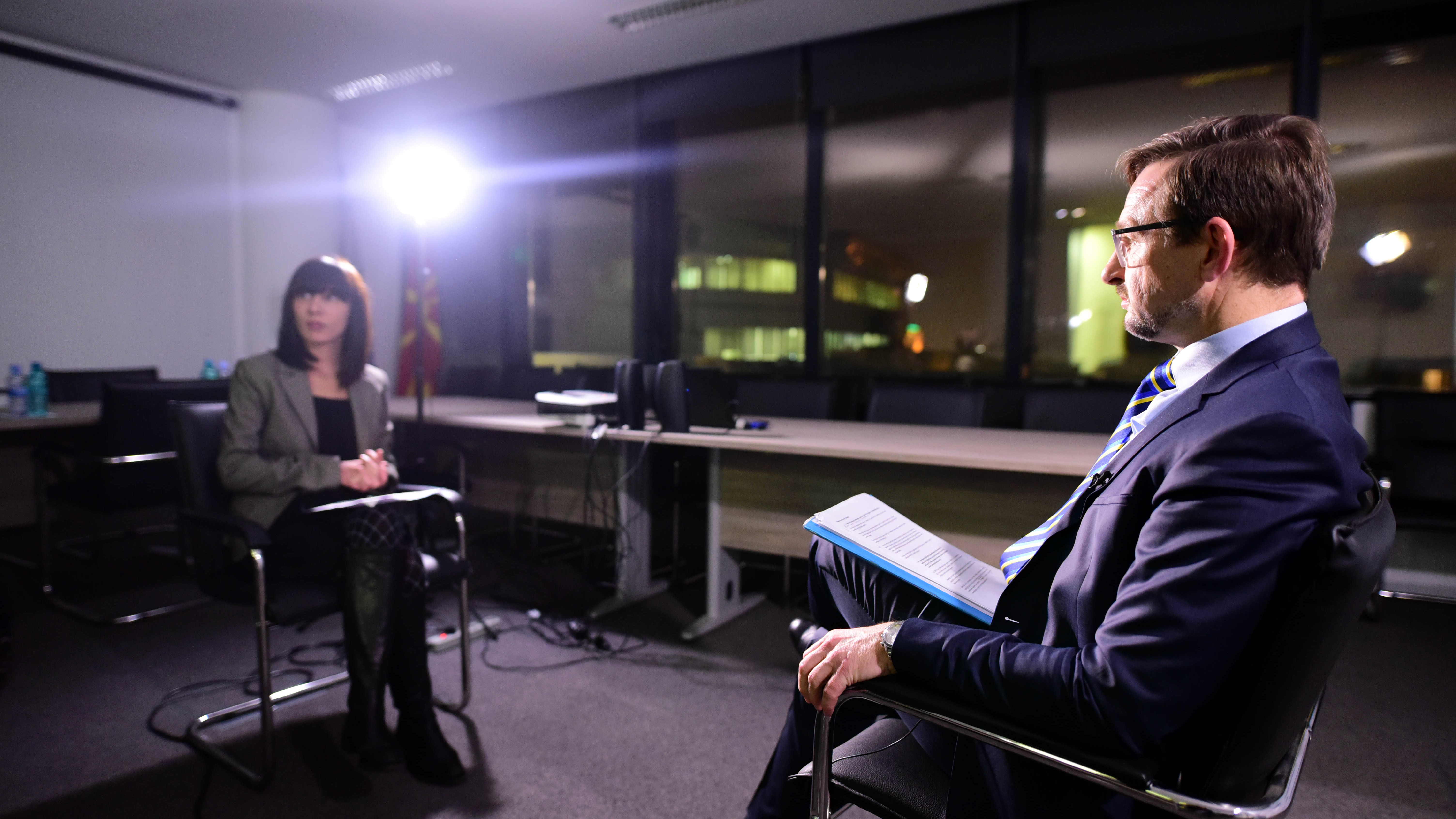 OSCE Secretary General, Thomas Greminger prepares for an interview, Skopje, 16 November 2017.