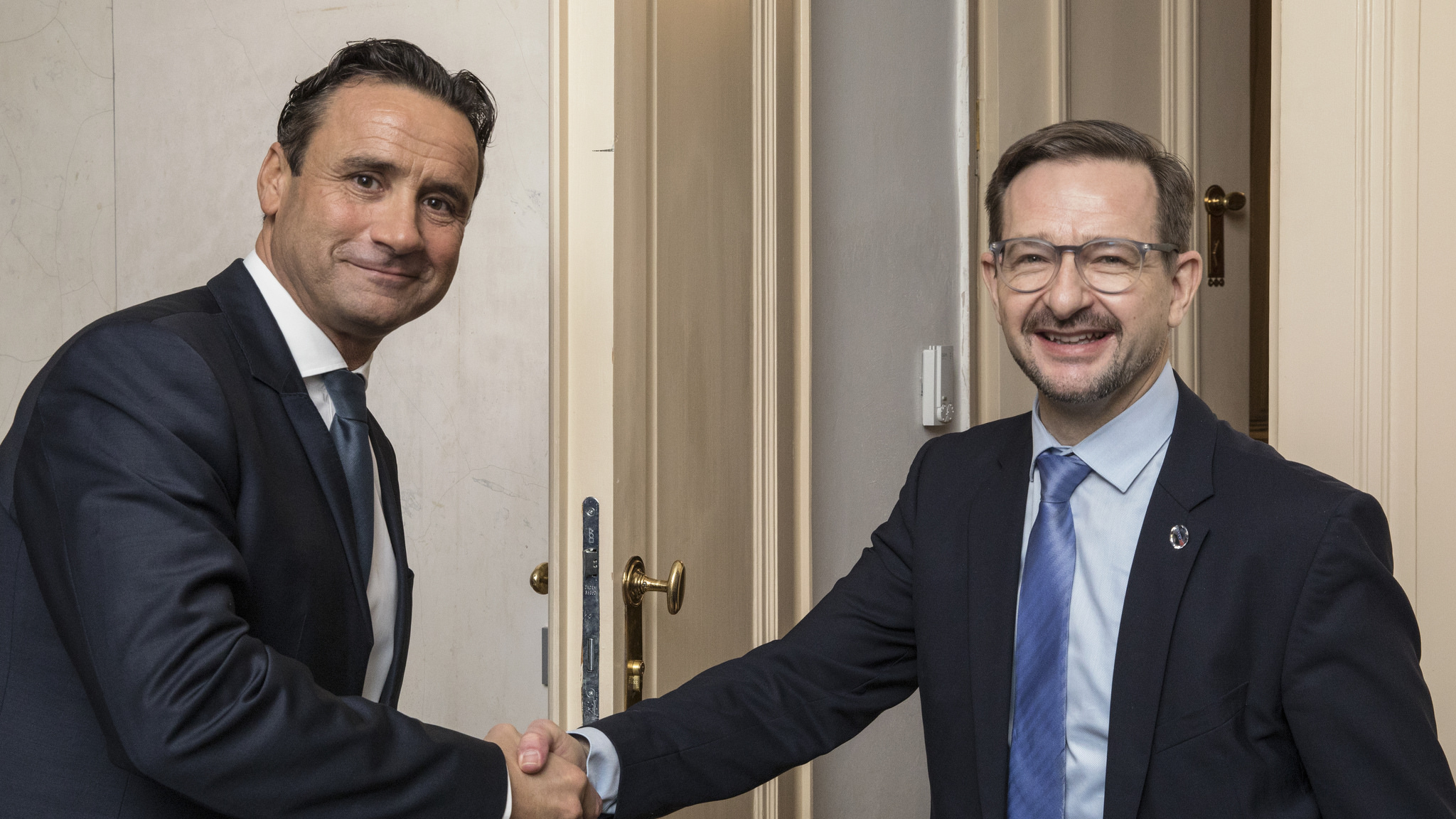 OSCE Secretary General Thomas Greminger (r), meets with OSCE Parliamentary Assembly Secretary General Roberto Montella, Vienna, 6 December 2017.