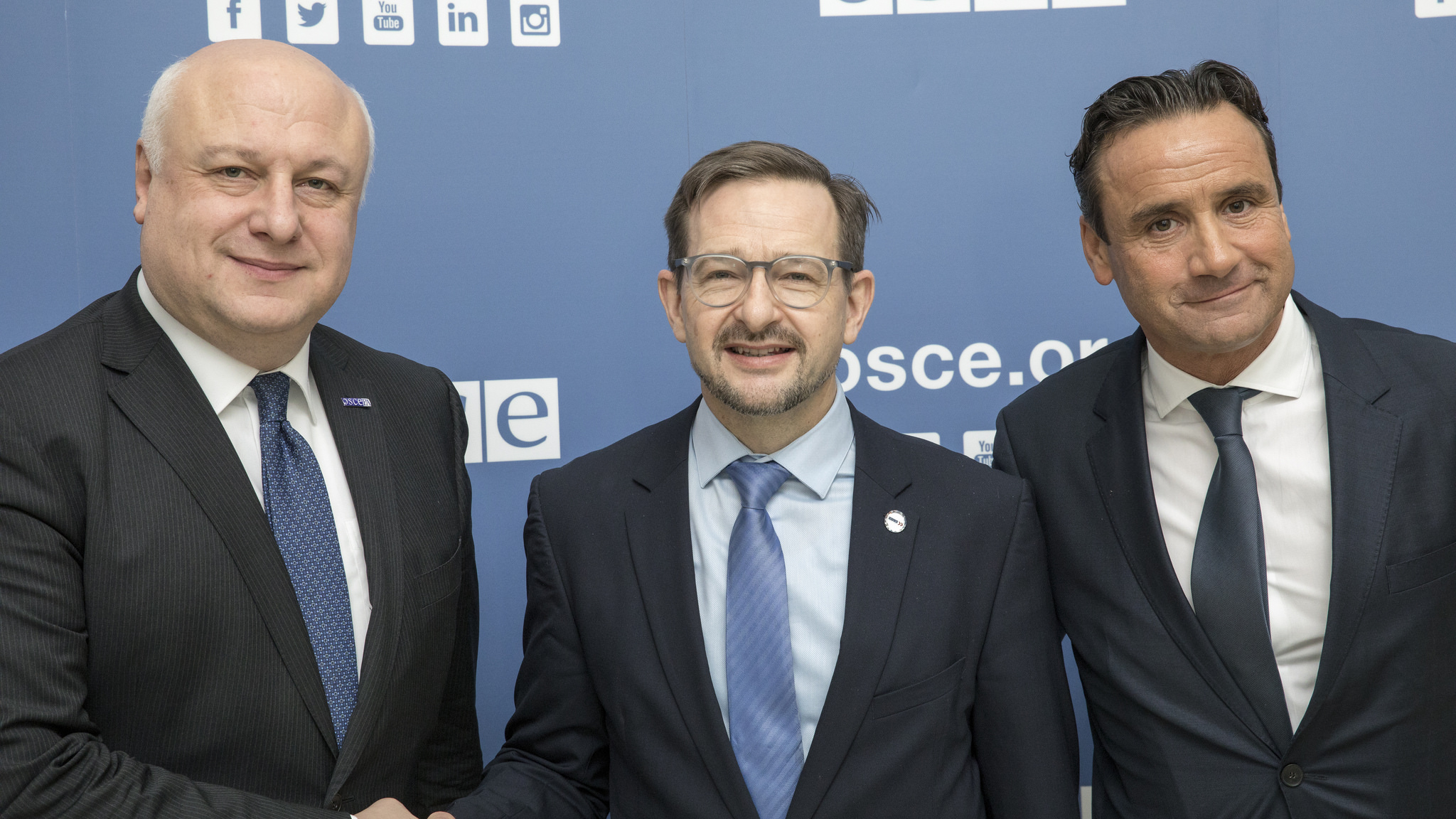 OSCE Parliamentary Assembly President George Tsereteli (l-r), with OSCE Secretary General Thomas Greminger and OSCE Parliamentary Assembly Secretary General Roberto Montella, Vienna, 6 December 2017.