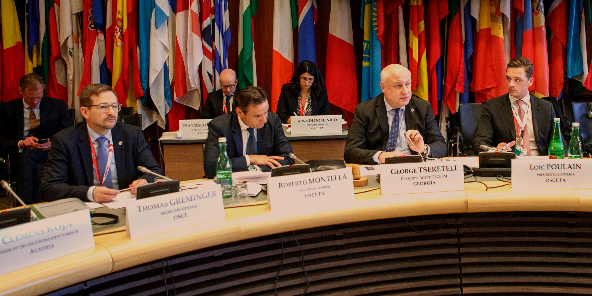OSCE Secretary General Thomas Greminger (l), and the Bureau of the OSCE Parliamentary Assembly, Vienna, 6 December 2017.