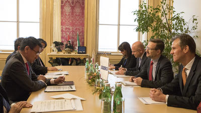 Vienna, 15 February 2018 – Japan’s Minister of Foreign Affairs Taro Kono today met with Secretary General Thomas Greminger at the OSCE Secretariat in Vienna, where they discussed Japan’s continuing engagement within the OSCE Asian Partnership and possible areas of further co-operation. The visit was the first ever to the OSCE by a Japanese foreign minister.