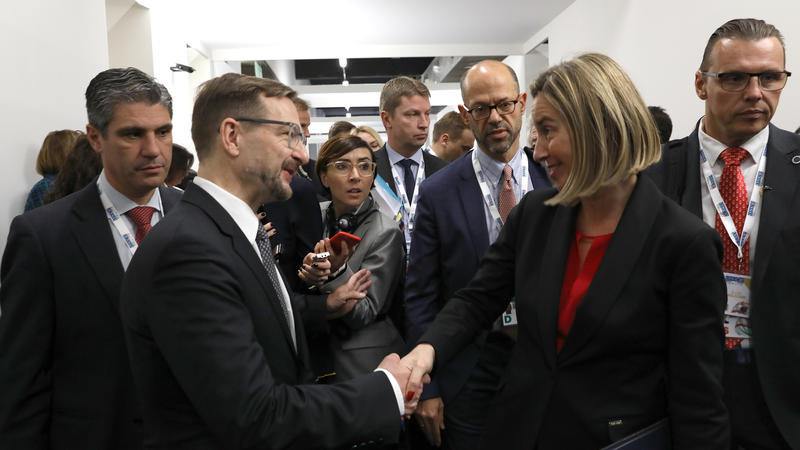OSCE Secretary General Thomas Greminger (r) and OSCE Chairperson-in-Office and Italian Minister of Foreign Affairs Enzo Moavero Milanesi during the 25th OSCE Ministerial Council, Milan, 6 December 2018.