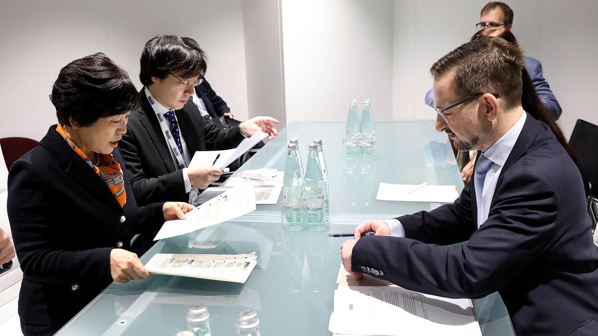 OSCE Secretary General Thomas Greminger meets with Toshiko Abe, State Minister for Foreign Affairs of Japan, Milan, 7 December 2018.