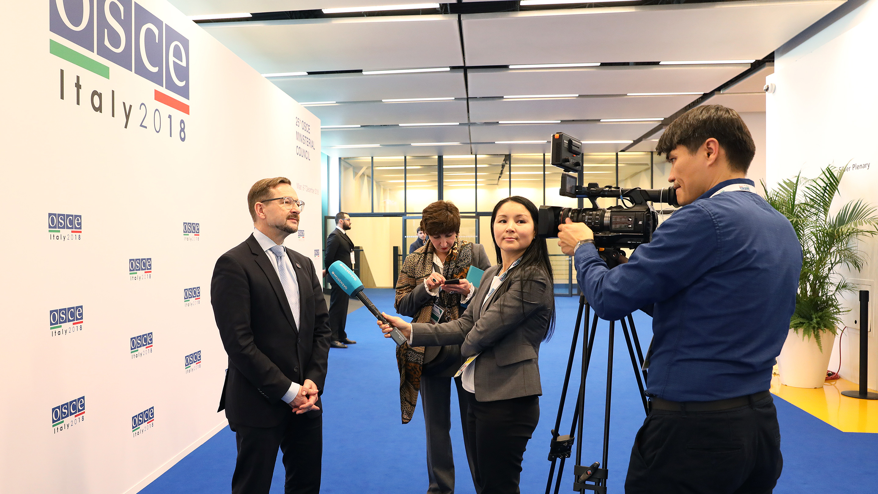 OSCE Secretary General Thomas Greminger talking to media on the margins of the 25th OSCE Ministerial Council, Milan, 7 December 2018.