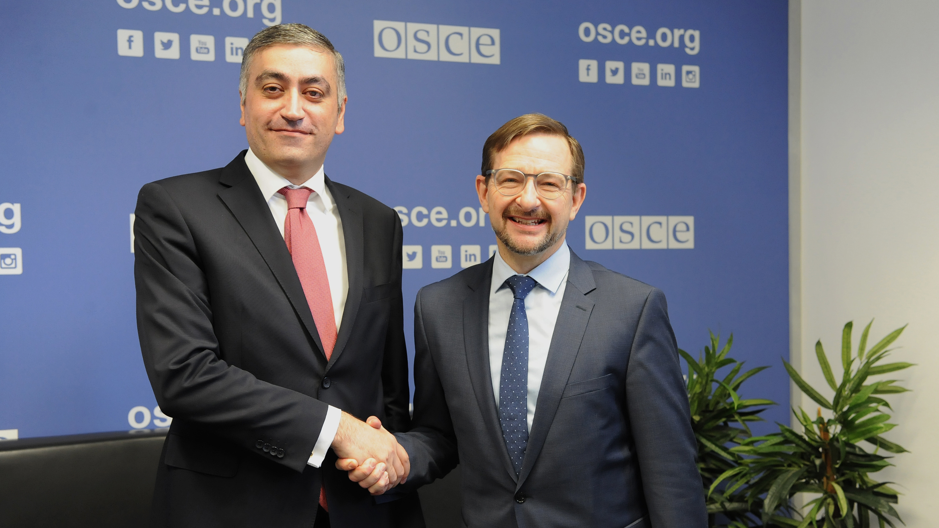 H.E. Armen Papikyan, Ambassador and Permanent Representative of Armenia to the OSCE, with OSCE Secretary General Thomas Greminger, Vienna, 17 January 2019.