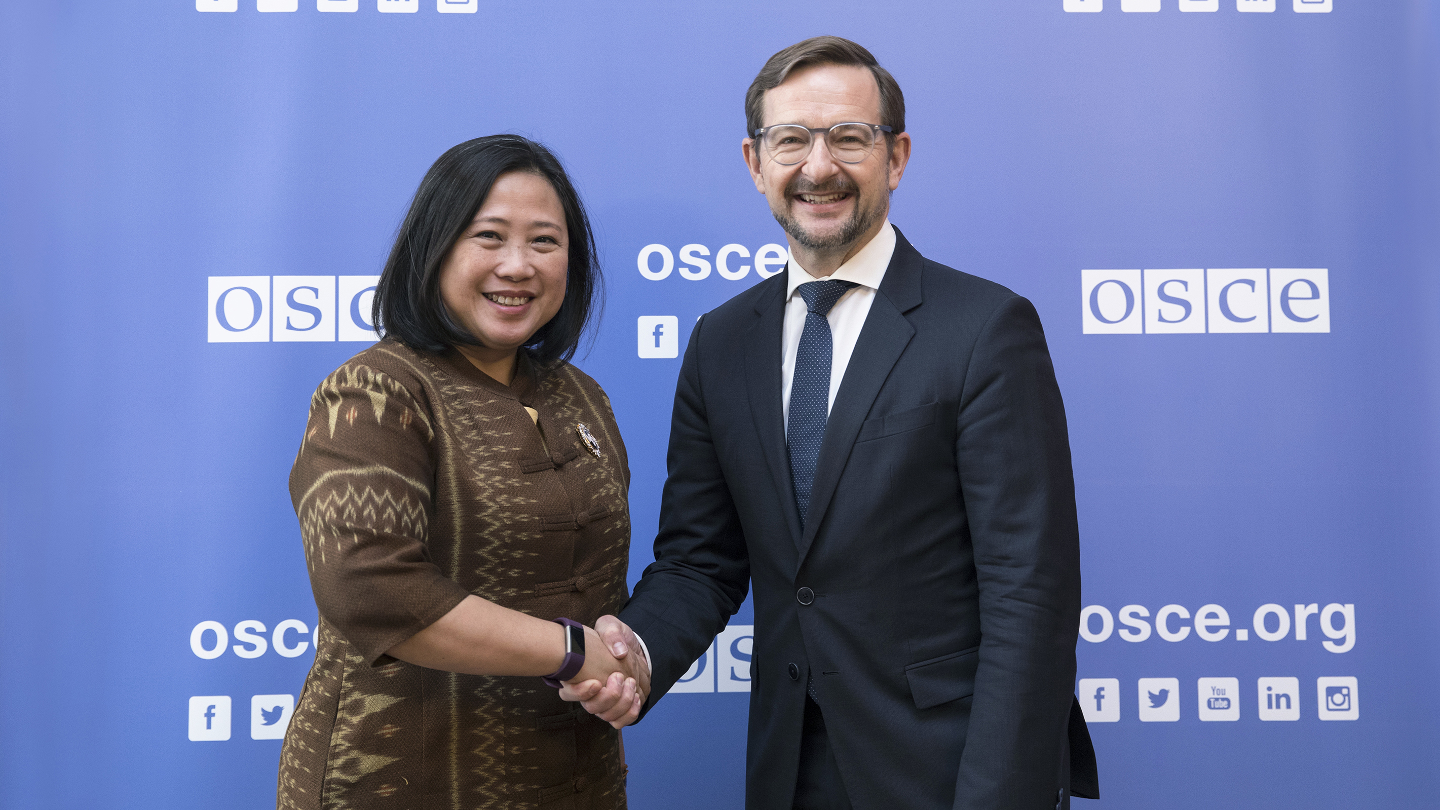 H.E. Morakot Srisawasdi, Ambassador and Permanent Representative of Thailand to the OSCE, with OSCE Secretary General Thomas Greminger, Vienna, 30 April 2019.