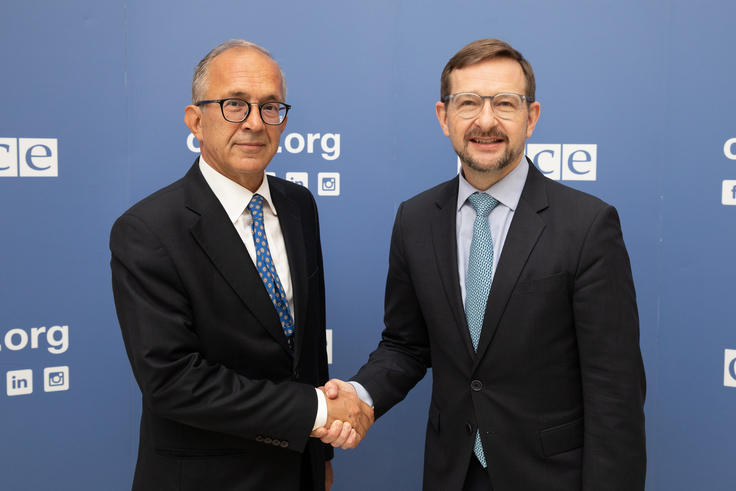 H.E. Yaşar Halit Çevik, Chief Monitor of the OSCE Special Monitoring Mission to Ukraine (l) with OSCE Secretary General Thomas Greminger, Vienna, 29 May 2019.