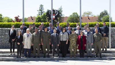 OSCE Secretary General Thomas Greminger and other high-level OSCE officials visited the Austrian Armed Forces International Centre (AUTINT) in Götzendorf, Lower Austria, on 24 May 2019 to mark the fifth anniversary of the Centre’s provision of pre-deployment training for the Special Monitoring Mission to Ukraine (SMM). He was accompanied by the Chief Monitor of the SMM, Ertugrul Apakan, the Deputy Permanent Representative of Slovakia to the OSCE, Ambassador Katarina Zakova, and the current Chief of the Austrian General Staff Directorate, Major General Bruno Hofbauer.