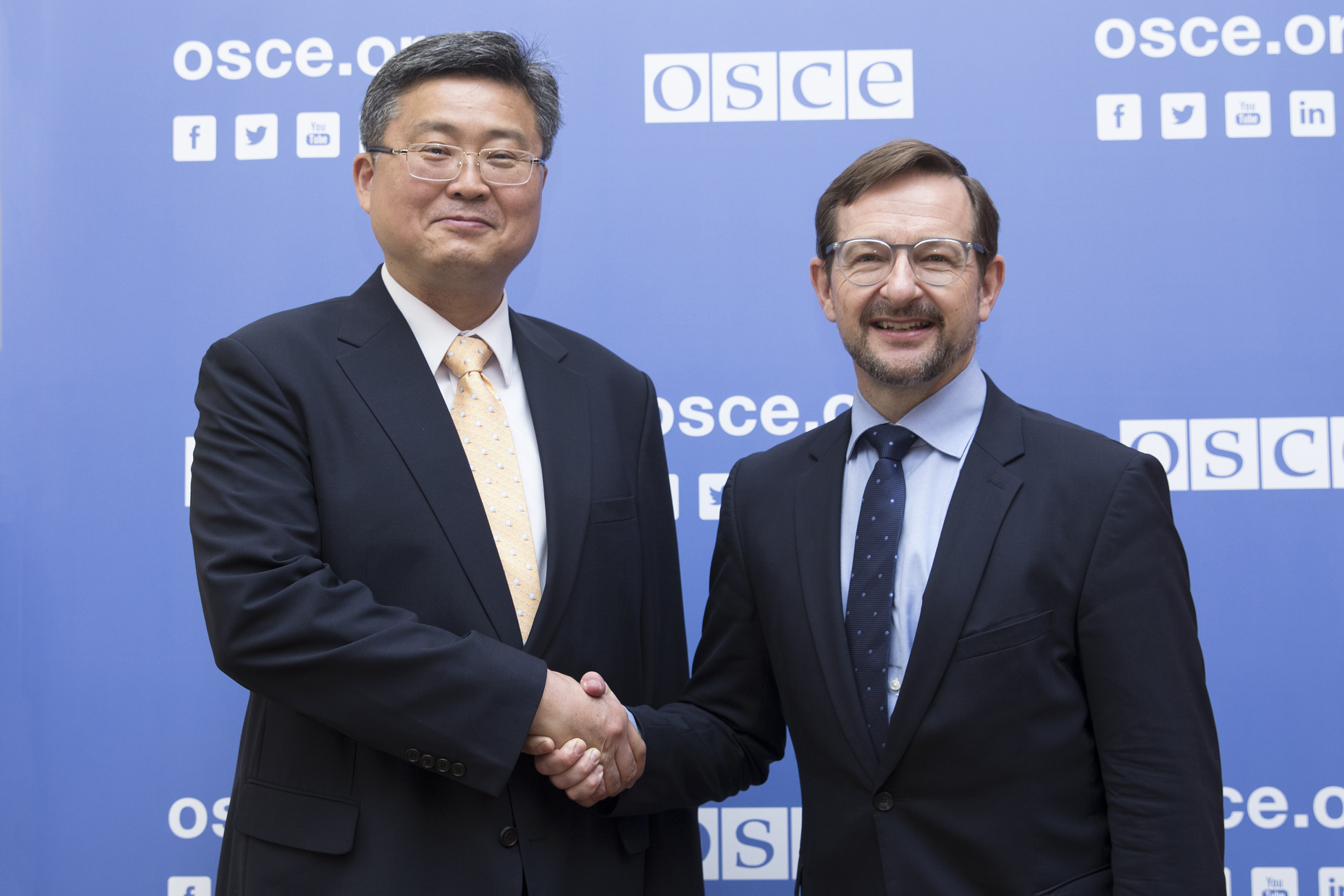 H.E. Chae-hyun SHIN, Ambassador and Permanent Representative of the Republic of Korea to the OSCE, with OSCE Secretary General Thomas Greminger, Vienna, 2 July 2019.