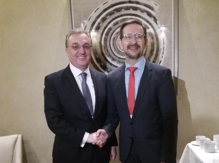 OSCE Secretary General Thomas Greminger and Foreign Minister of Armenia Zohrab Mnatsakanyan meeting on the margins of the Munich Security Conference, 14 February 2020.