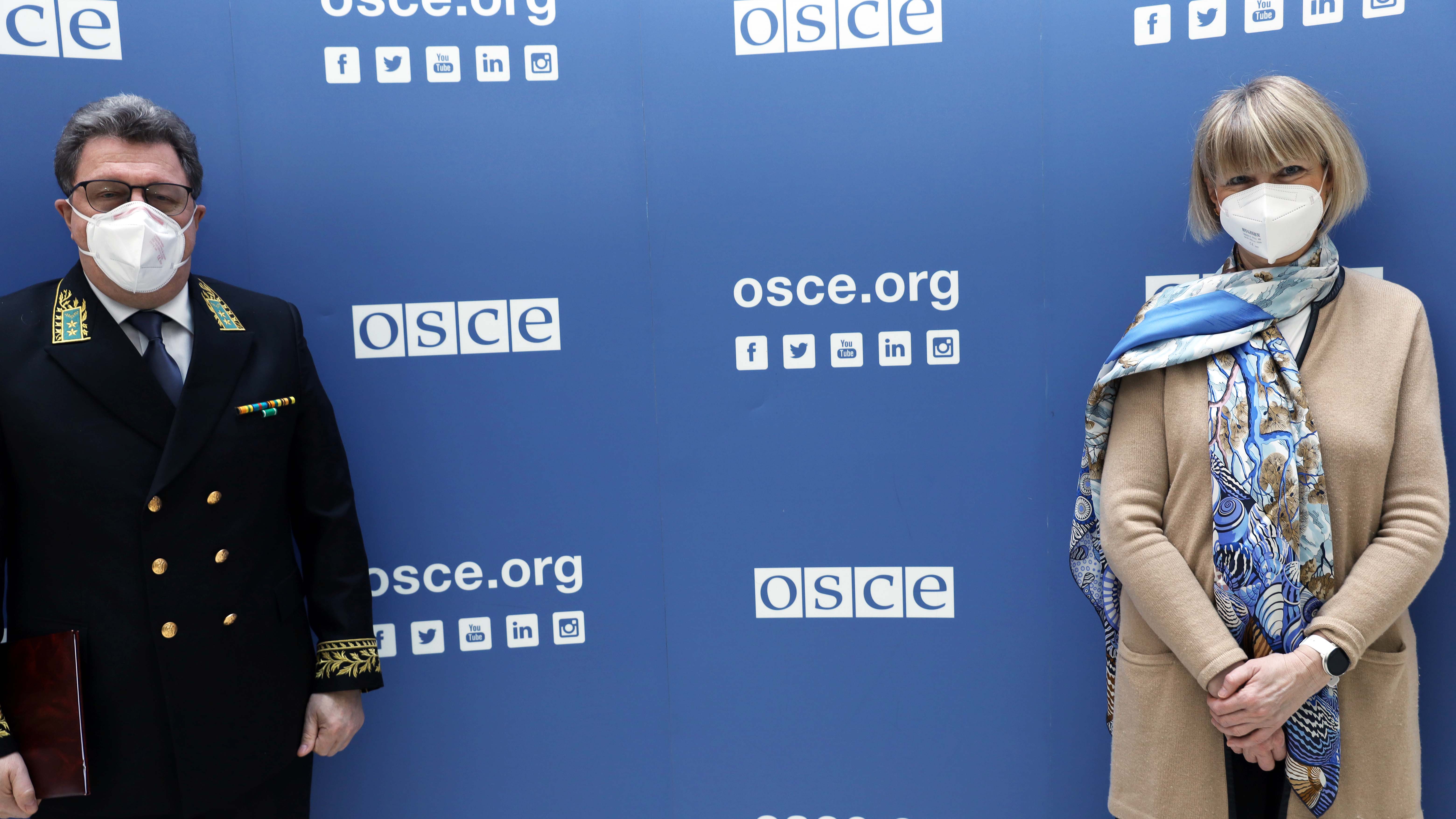 H.E. Konstantin Gavrilov, Head of the Delegation of the Russian Federation to the Vienna Negotiations on Military security and Arms Control, with OSCE Secretary General Helga Maria Schmid, Vienna, 1 February 2021.