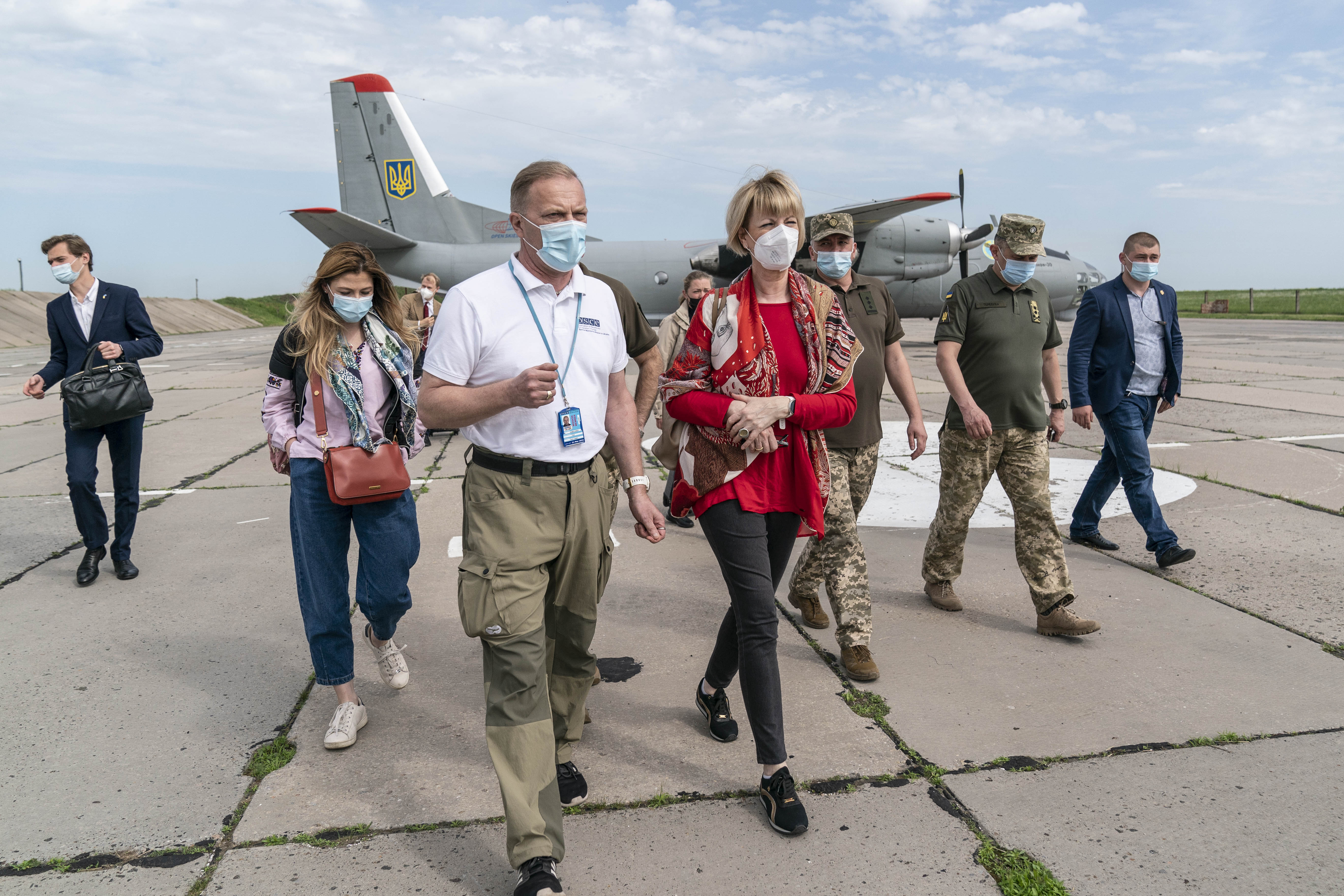 OSCE Secretary General Helga Maria Schmid and Emine Dzheppar, Ukrainian Deputy Foreign Minister (second from left), 28 May 2021.