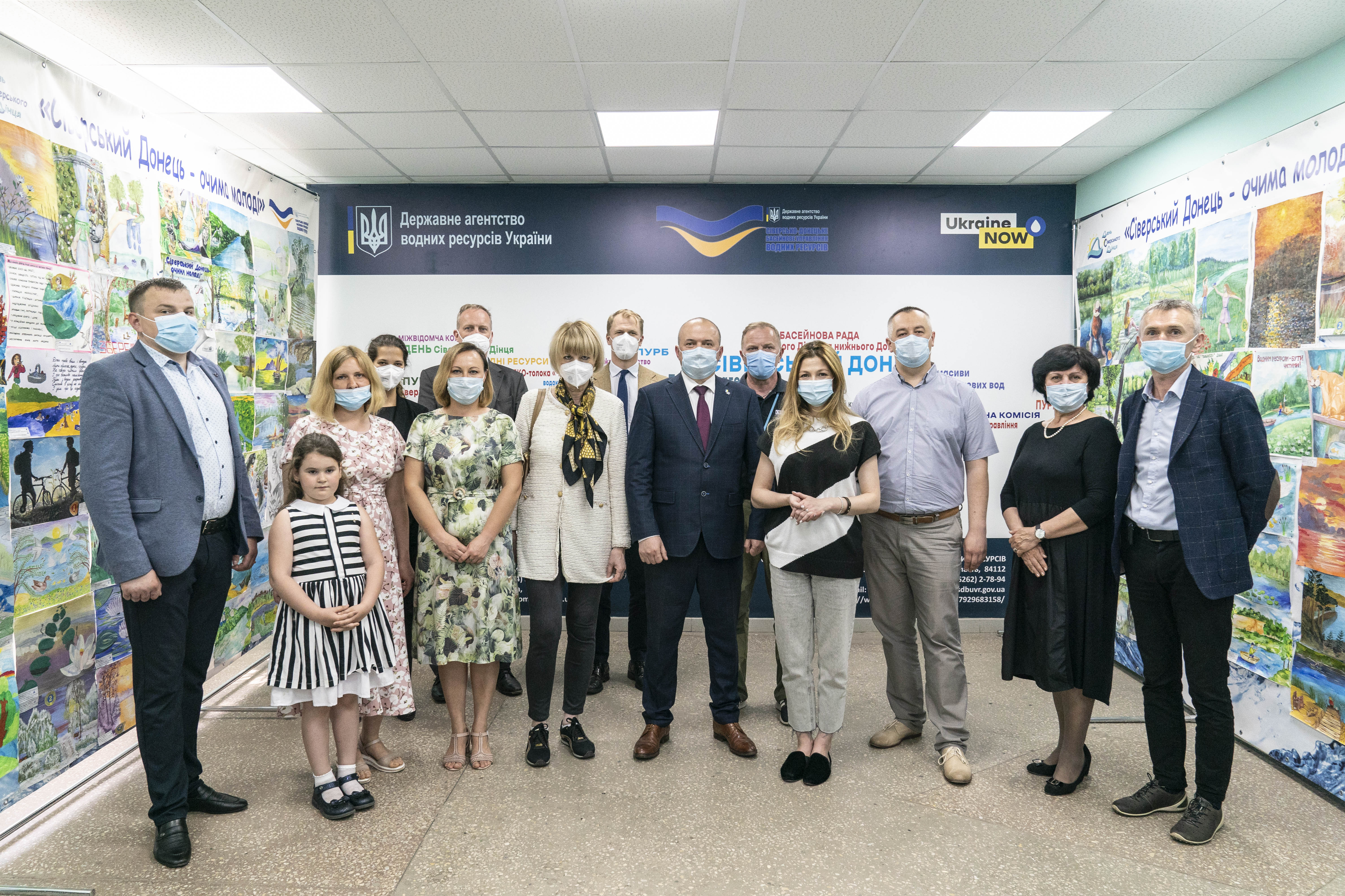 OSCE Secretary General Helga Maria Schmid with the team of the Sieversky Donets Basin Management Laboratory, Ukraine, May 29 2021