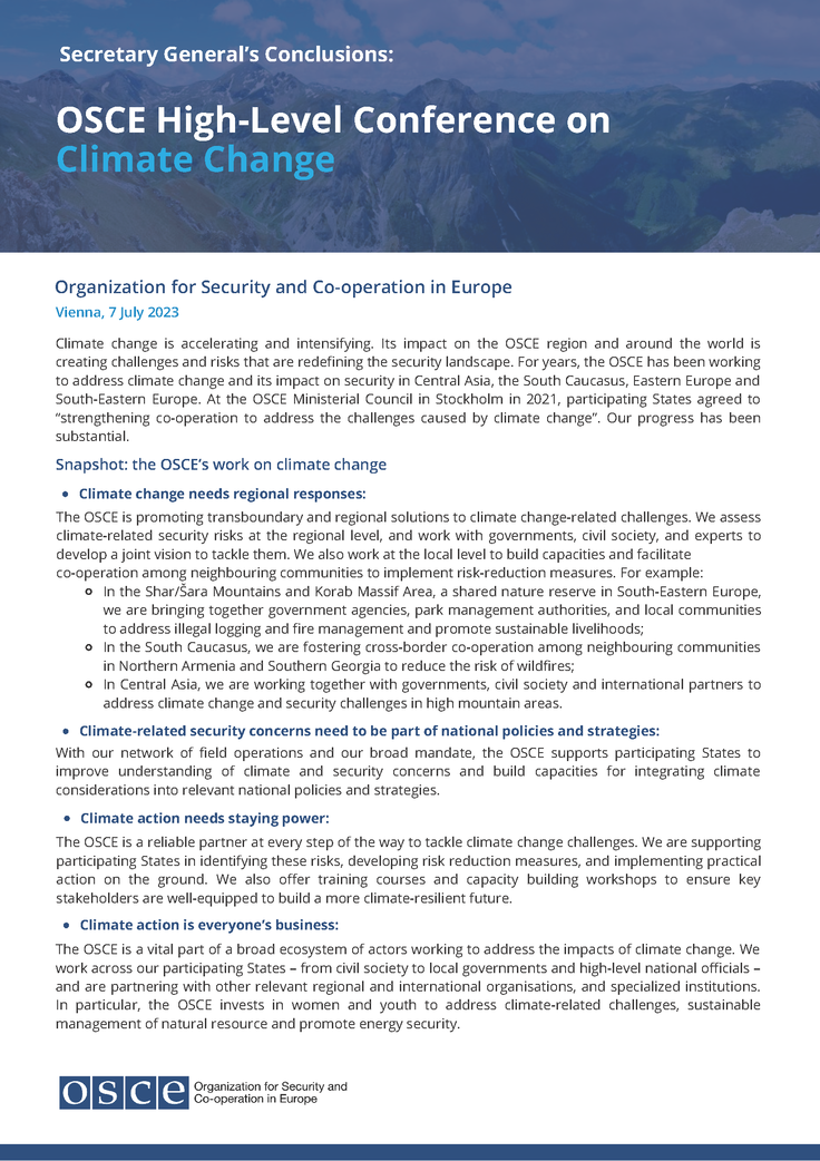 Secretary General’s Conclusions: OSCE High-Level Conference on Climate Change