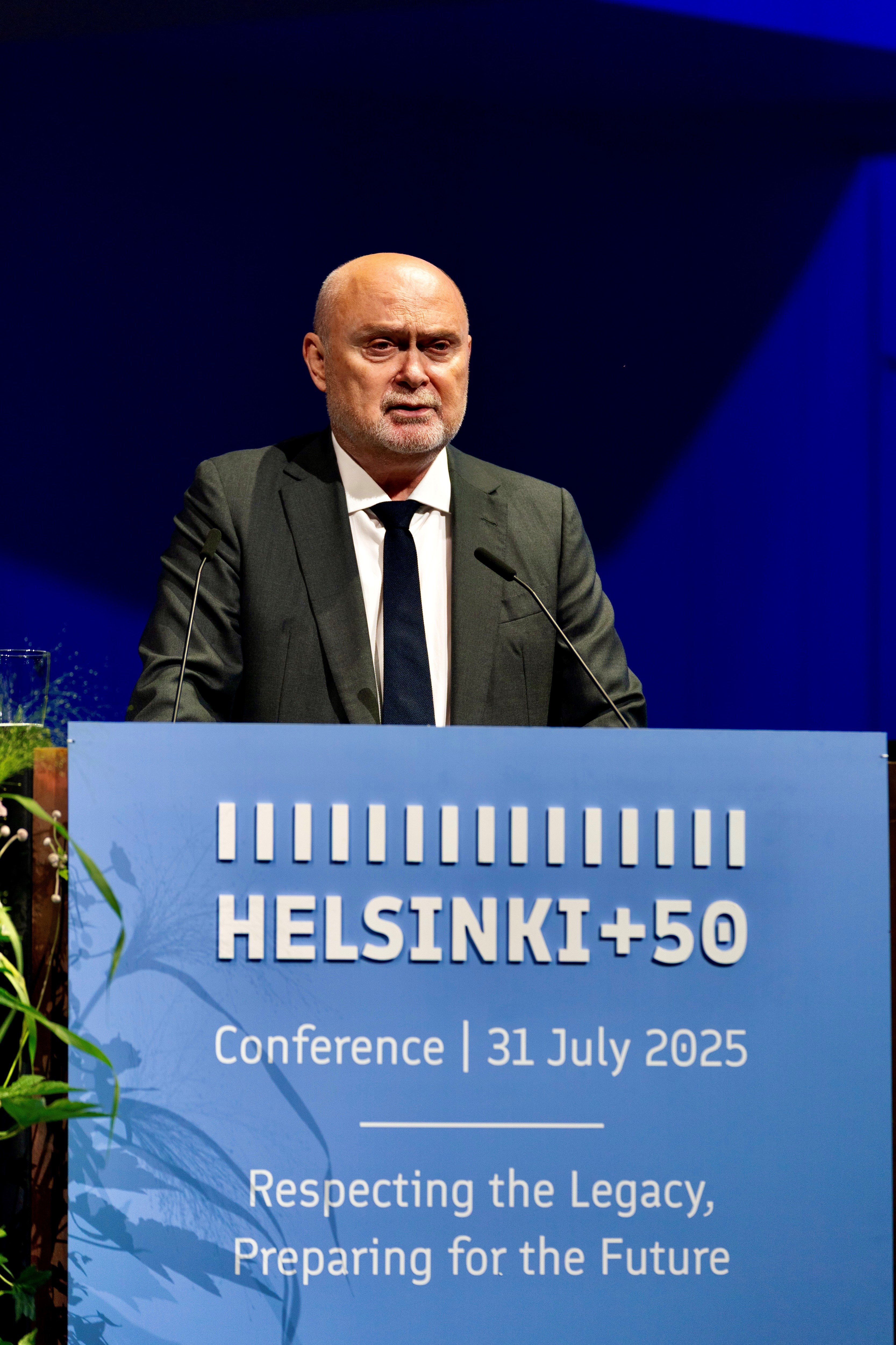 OSCE Secretary General Feridun H. Sinirlioğlu delivers a keynote address at the Helsinki+50 Conference, 31 July 2025