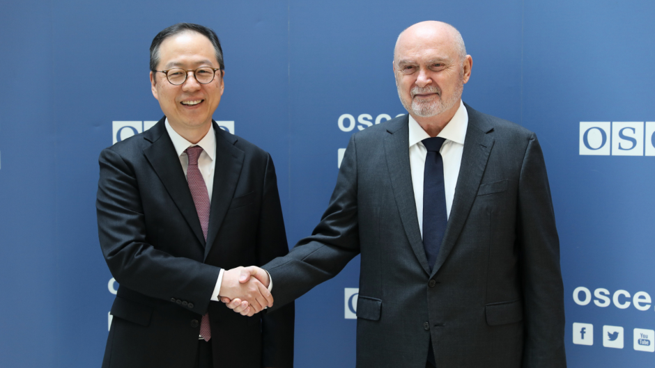 OSCE Secretary General Feridun H. Sinirlioğlu (right) and Deputy Minister for Multilateral and Global Affairs of the Republic of Korea, Kweon Ki-hwan (left), Vienna, 11 November 2025.