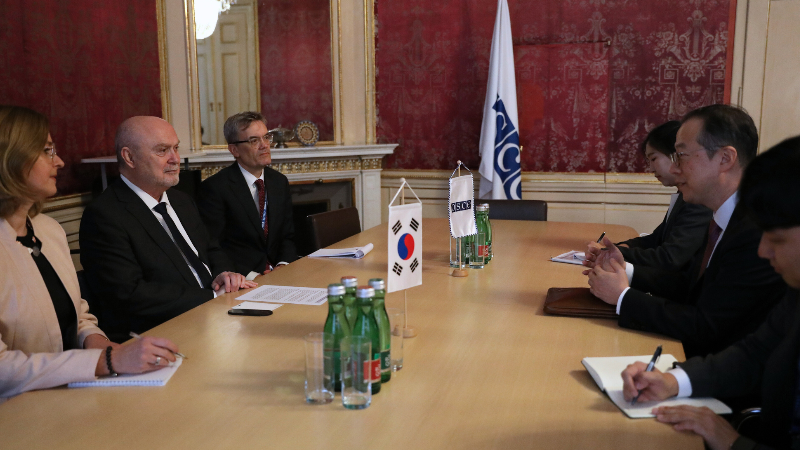OSCE Secretary General Feridun H. Sinirlioğlu (left) and Deputy Minister for Multilateral and Global Affairs of the Republic of Korea, Kweon Ki-hwan (right), Vienna, 11 November 2025.