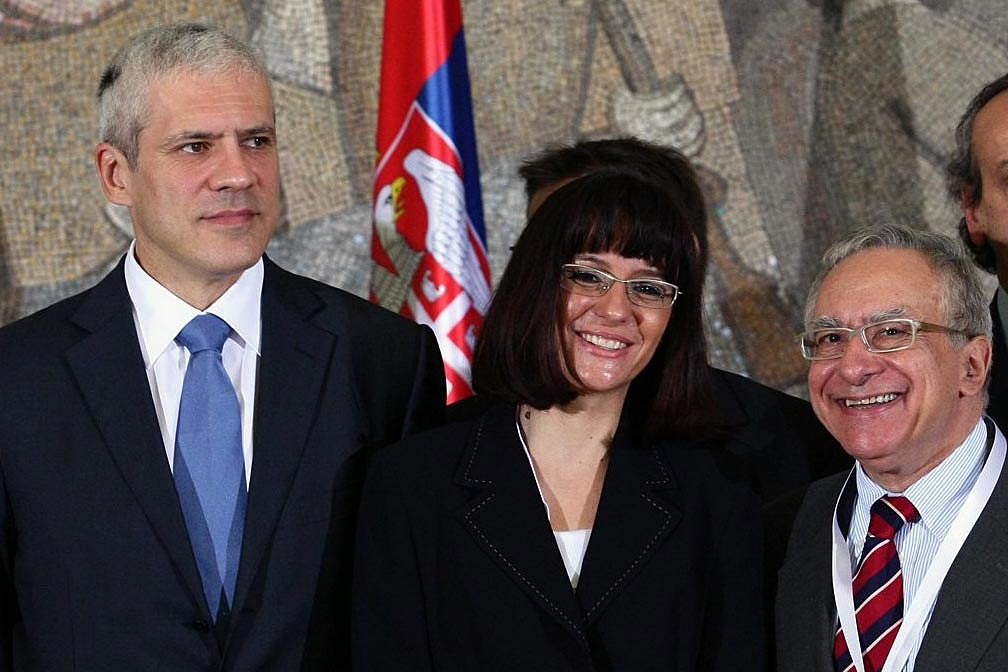 (Left to right) Serbian President Boris Tadic, Serbian Justice Minister Snezana Malovic and Head of the OSCE Mission to Serbia Dimitrios Kypreos at a regional ministerial conference on organized crime, Belgrade, 28 September 2009.