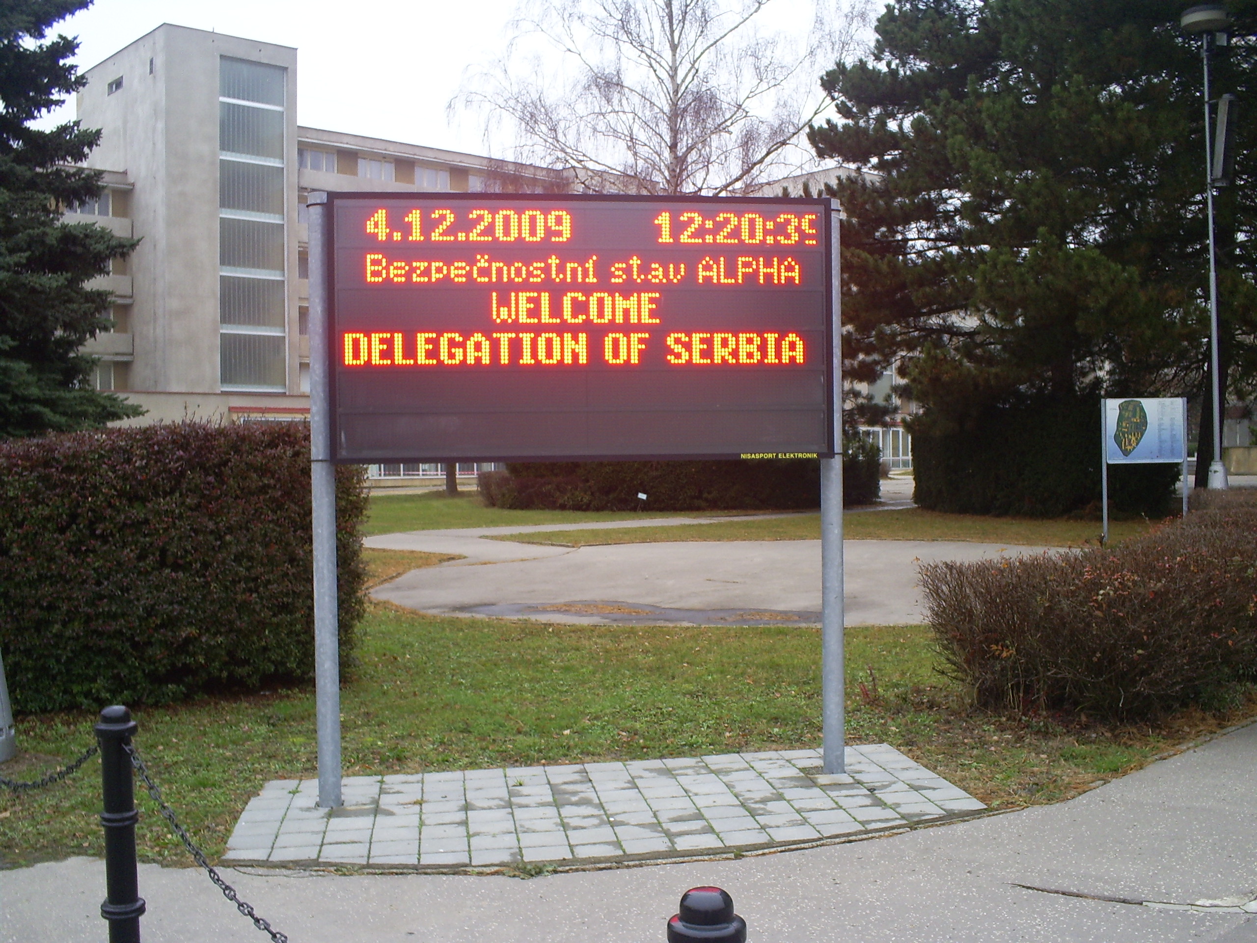 Sign at the Czech University of Defence in Brno welcomes Serbian officers-in-training arriving for an OSCE-supported study trip, 4 December 2009.