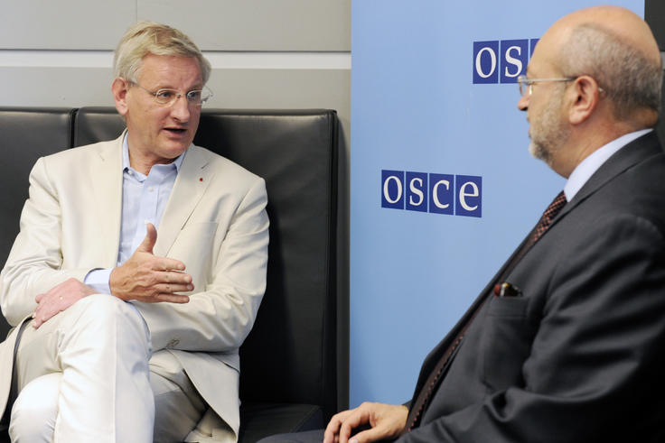 The OSCE Secretary General Lamberto Zannier (r) met Swedish Foreign Minister Carl Bildt (l) to discuss current security issues in the OSCE region, Vienna, 20 June 2013.