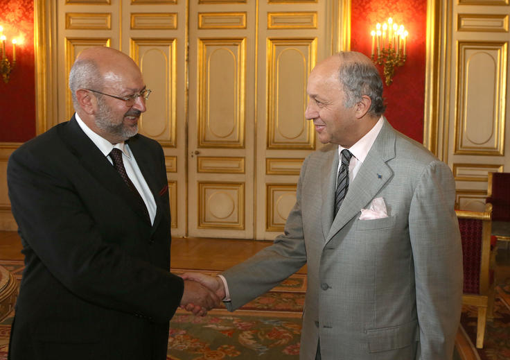 OSCE Secretary General Lamberto Zannier (l) meets with French Foreign Minister Laurent Fabius in Paris, 23 July 2013.