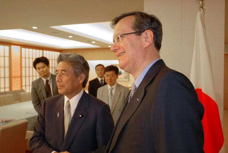 OSCE Secretary General Marc Perrin de Brichambaut (r) meets Japan's Foreign Minister Hirofumi Nakasone, Tokyo, 9 June 2009.