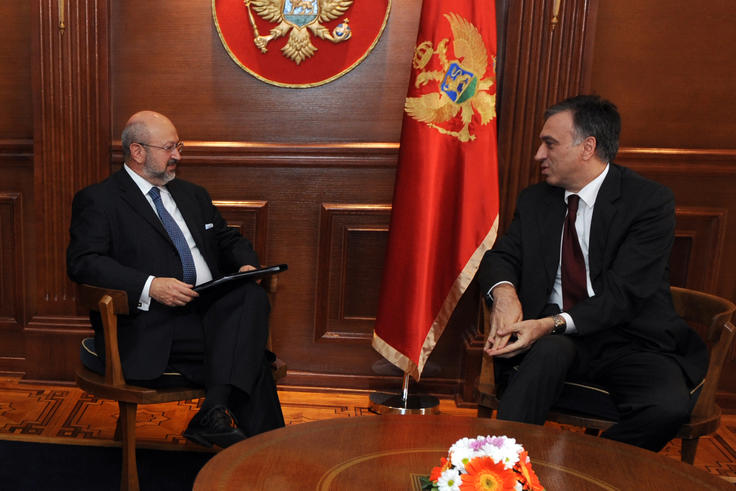 President of Montenegro Filip Vujanović (r) in discussion with OSCE Secretary General Lamberto Zannier, Podgorica, 1 November 2013.