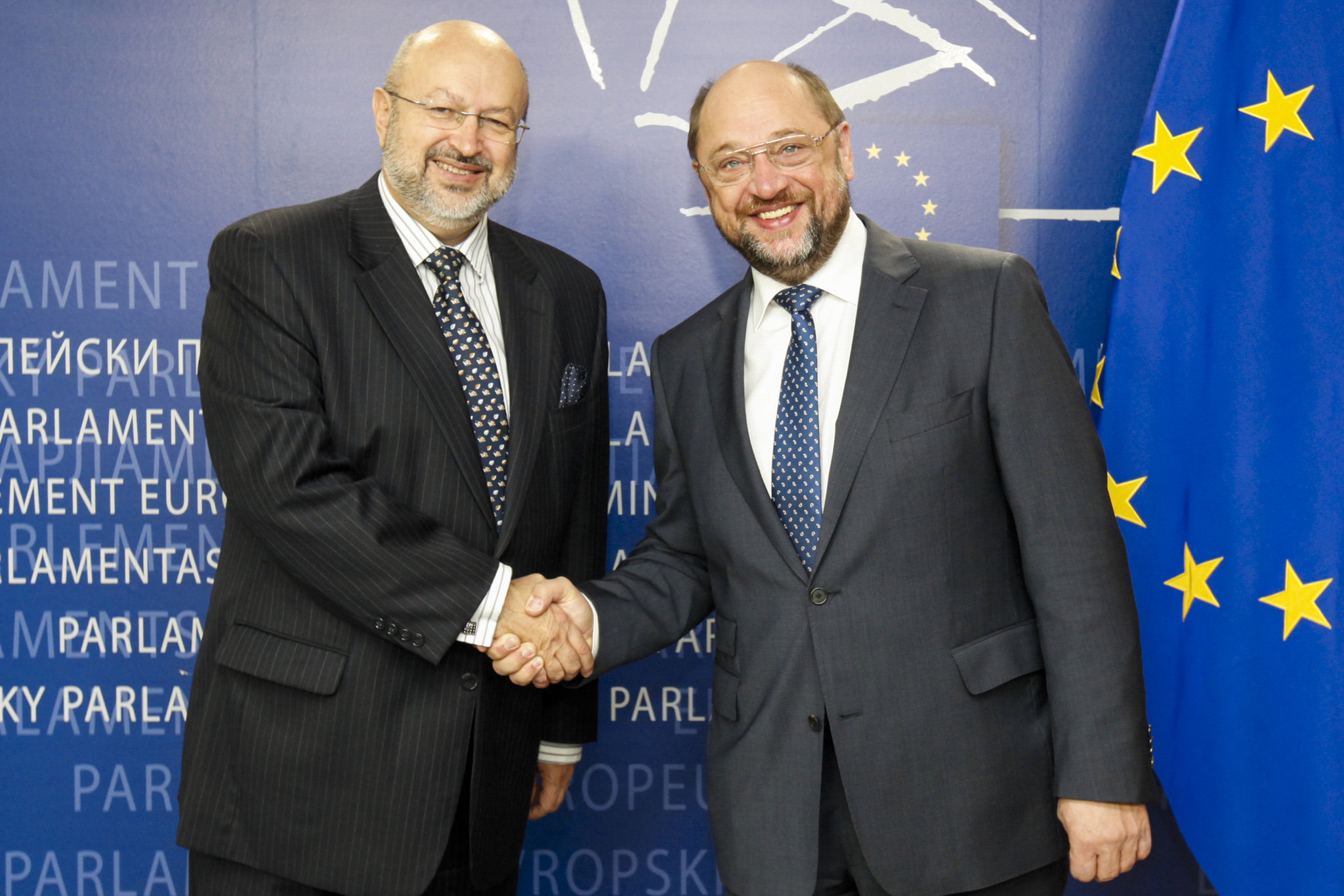 OSCE Secretary General Lamberto Zannier meets with European Parliament President Martin Schulz, Brussels, 12 November 2014.