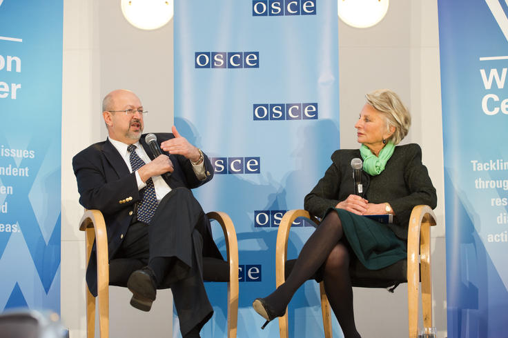 OSCE Secretary General Lamberto Zannier (l.) and the Honorable Jane Harman, Director, President & CEO of the Wilson Center, during a Security Days event, Washington DC, 17 March 2015.