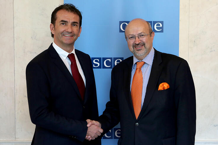 H.E. Ambassador Sanjin Halimović (l), Permanent Mission of Bosnia and Herzegovina to the International Organizations in Vienna, and the OSCE Secretary General Lamberto Zannier, Vienna, 16 July 2015.