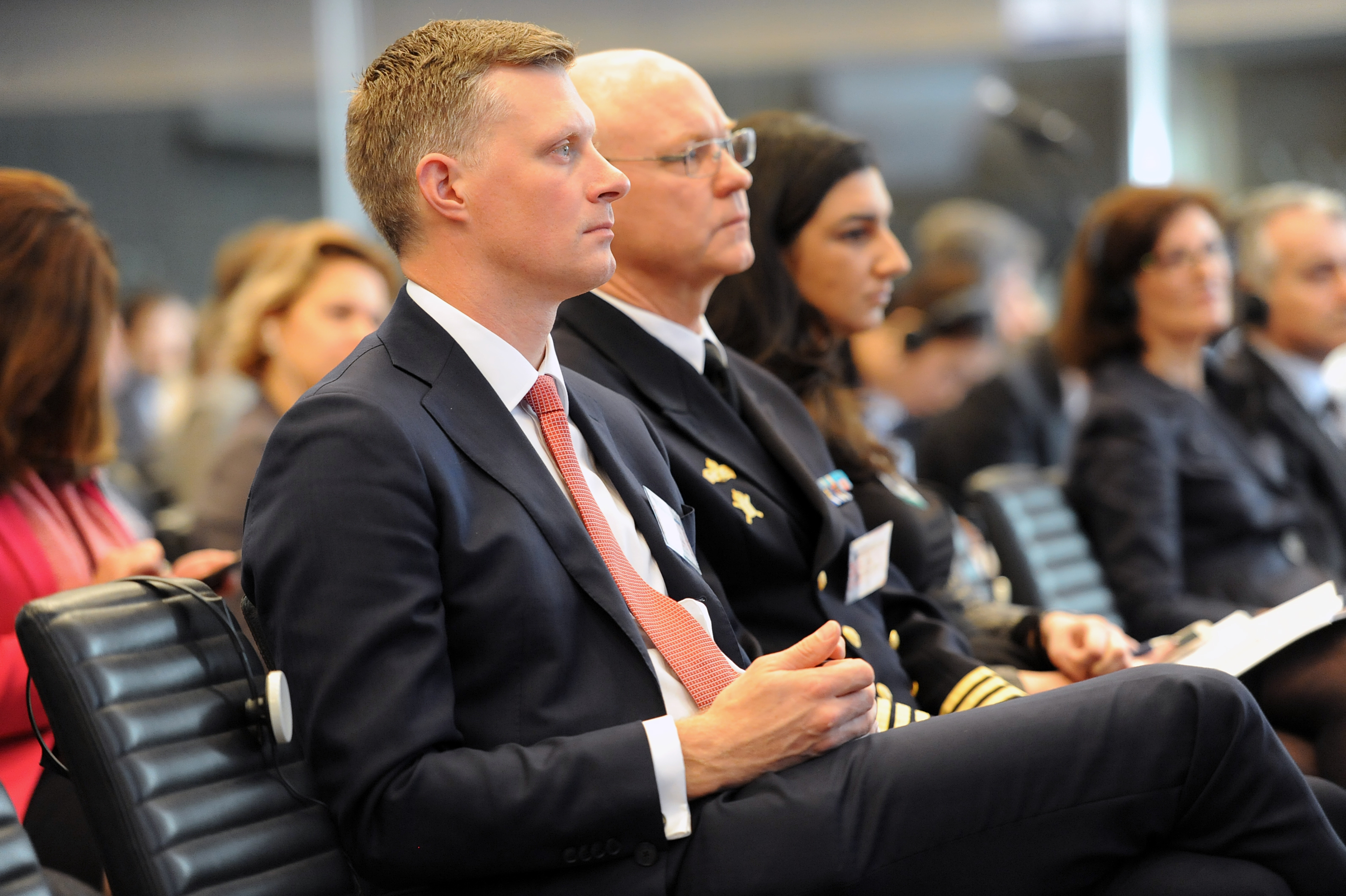 (L-r) Robert Egnell, Associate Professor of War Studies, Swedish Defence University, Senior Fellow of Georgetown Institute for Women, Peace and Security, Commander Jan Dunmurray, Nordic Centre for Gender in Military Operations, and Milena Stošić, OSCE Representative of the Chairmanship-in-Office on Youth and Security during the OSCE Security Days event on gender equality and security, Vienna, 13 November 2015.