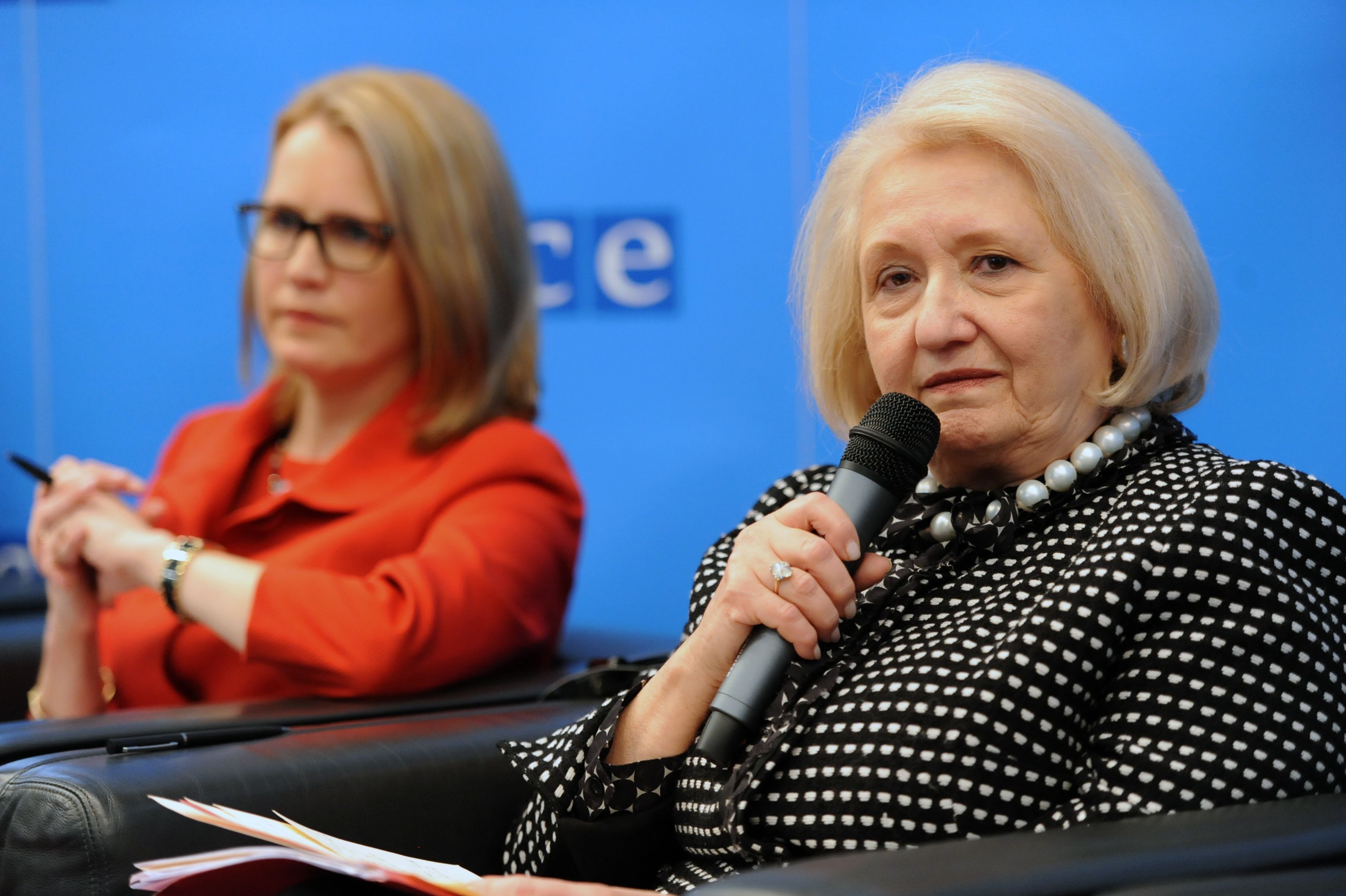 (L-r) Ambassador Katja Pehrman, Permanent Representative, Delegation of Finland to the OSCE, and Ambassador Melanne Verveer, OSCE Special Representative of the Chairmanship-in-Office on Gender Issues during the OSCE Security Days event on gender equality and security, Vienna, 13 November 2015.