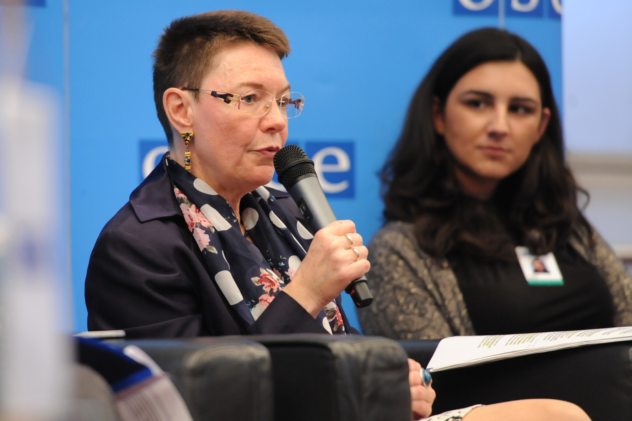 (L-r) Ambassador Patricia Flor, Director-General for International Order, United Nations and Arms Control, German Federal Foreign Office, and Milena Stošić, OSCE Special Representative of the Chairmanship-in-Office on Youth and Security, during the OSCE Security Days event on gender equality and security, Vienna, 13 November 2015.